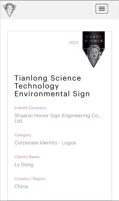 近日,由美國國際獎項協(xié)會International Awards Associates(IAA)主辦,全球創(chuàng)意領(lǐng)域極具影響力之一的繆斯設(shè)計獎結(jié)果揭曉,天隆科技VI標(biāo)識中的環(huán)境標(biāo)識榮獲2023年度繆斯創(chuàng)意設(shè)計銀獎。